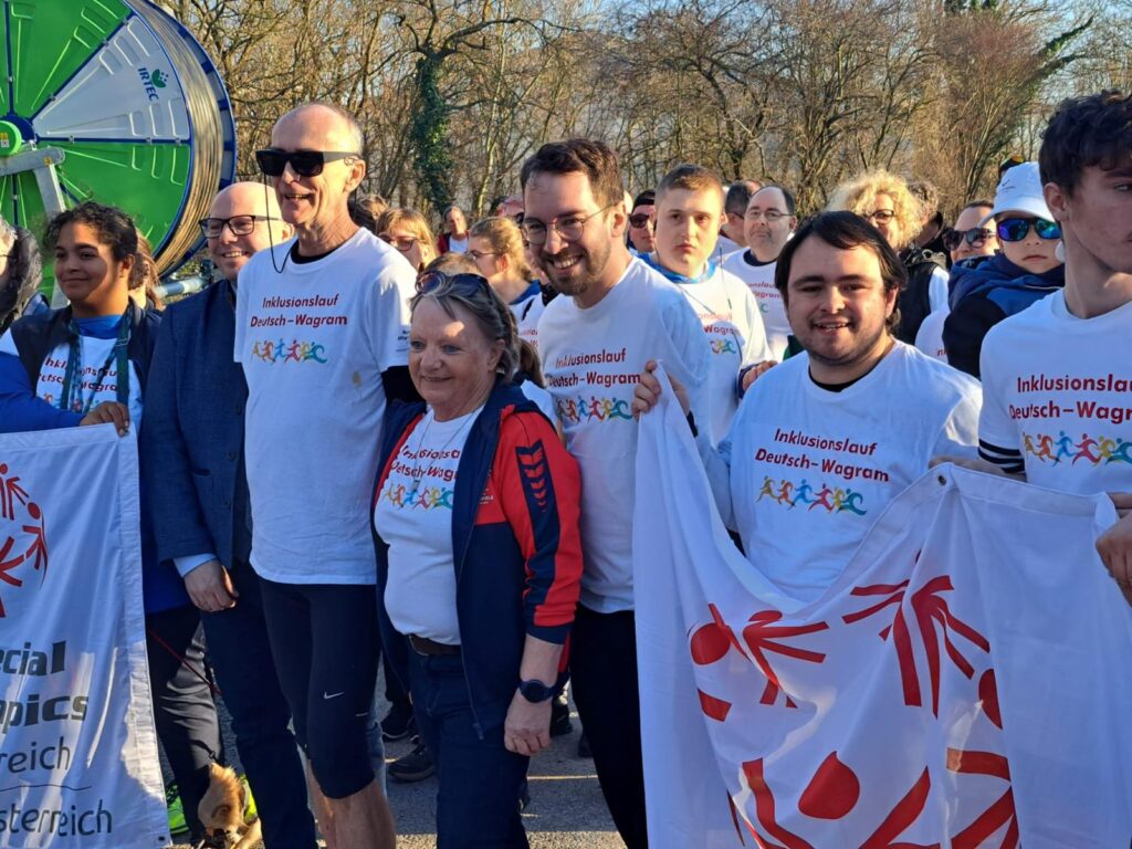 Das heißt: Menschen mit und ohne Beeinträchtigung liefen gemeinsam. Alle konnten mitmachen. Alle waren willkommen. Über 60 Inklusionsläufer von der Lebenshilfe Werkstätte Matzen, vom Verein Happiness aus Strasshof, von der Kolping Werkstätte Mistelbach und von Special Olympics NÖ legten gemeinsam eine 200 m lange Strecke zurück und wurden von zahlreichen Zuschauern begeistert angefeuert. Sie zeigten viel Freude, Mut und Teamgeist.