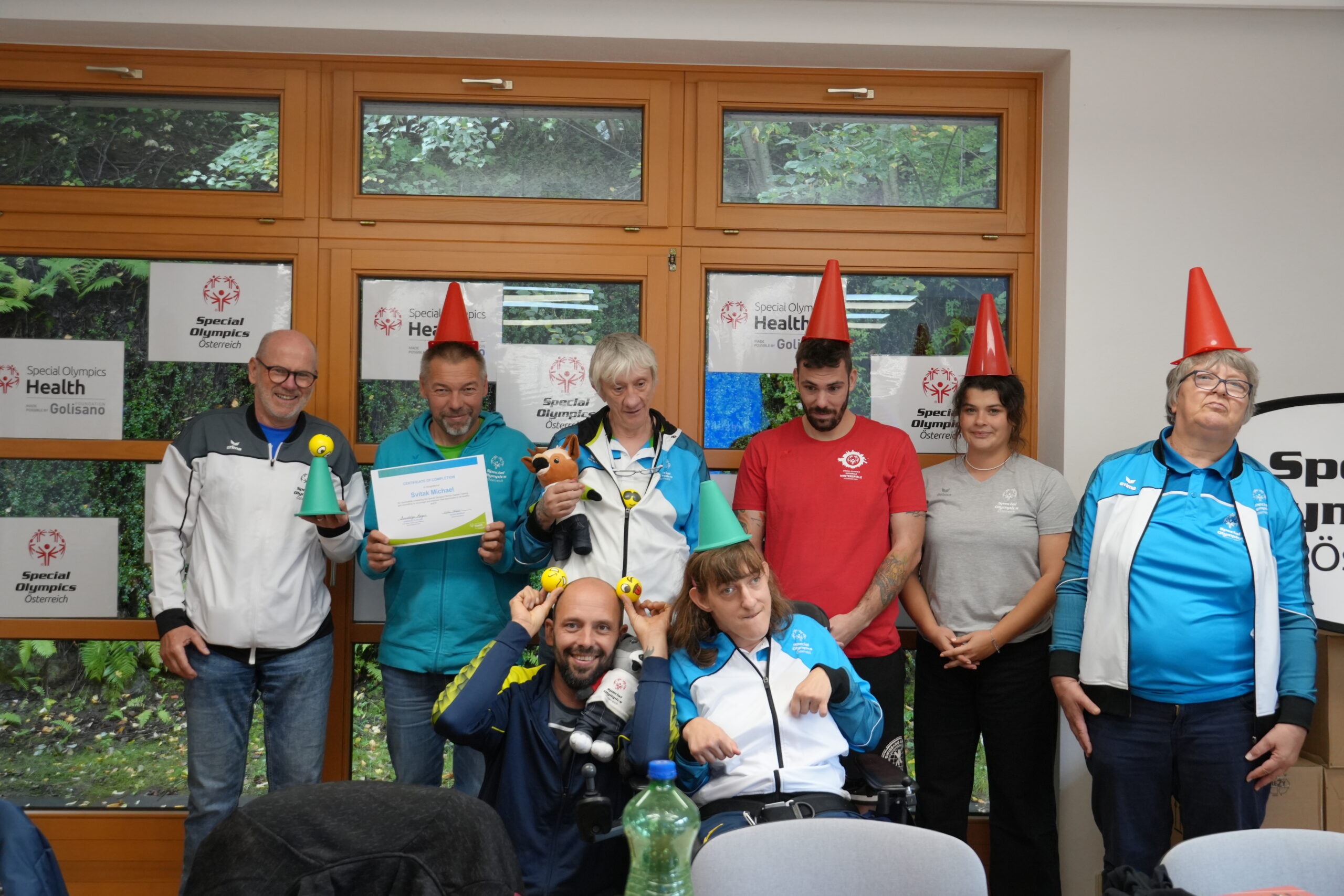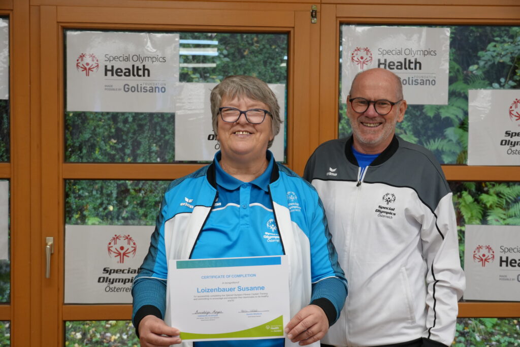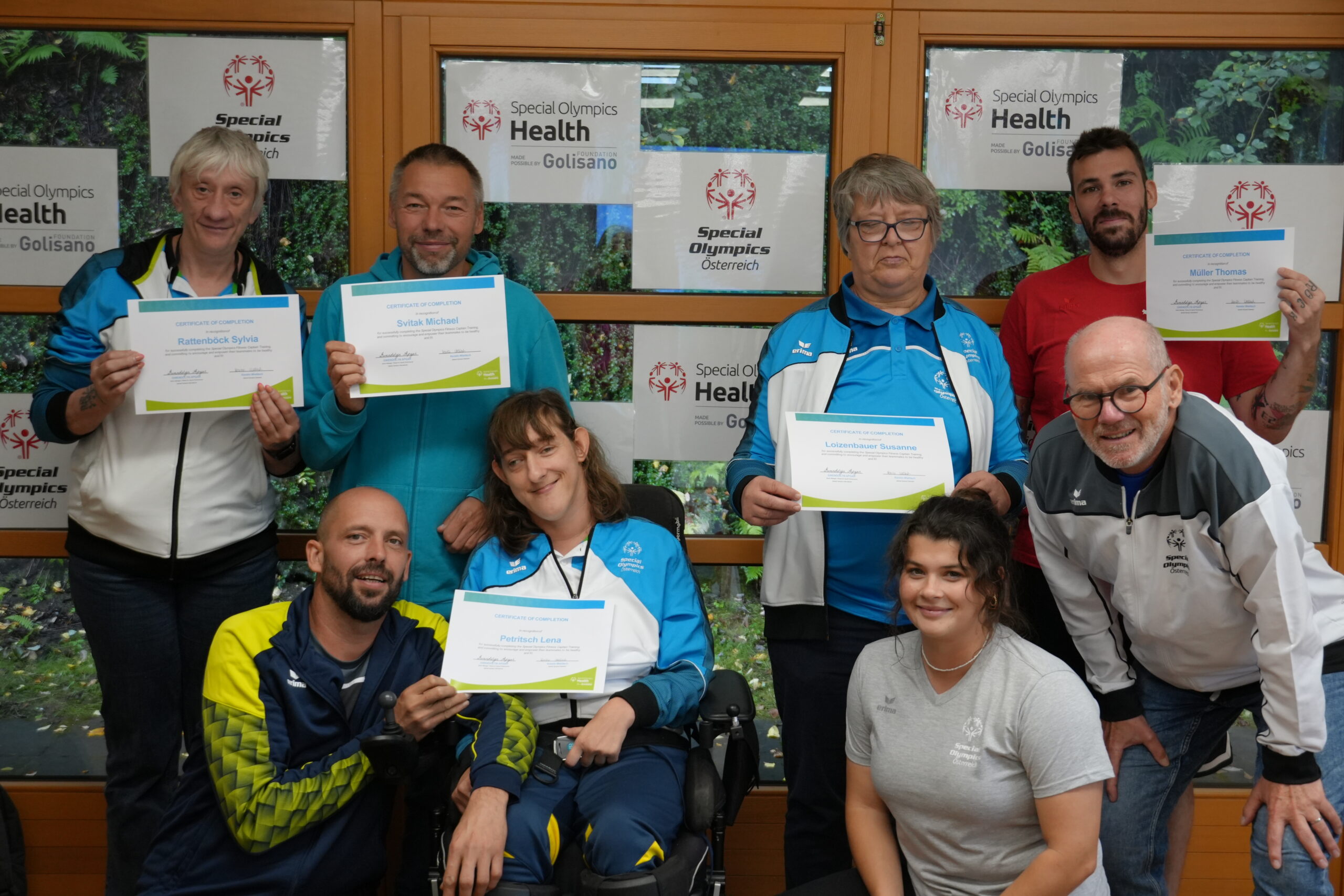 Am 24. und 25. September 2025 hat in Schladming wieder ein Fitness Captain Seminar von SOÖ stattgefunden. Mitdabei war diesmal auch die Sportsprecherin von Special Olympics Niederösterreich – Susanne Loizenbauer (mit Mentor Christian Schöberl). Nach zwei herausfordernden und anstrengenden Tagen hat Susanne Loizenbauer gemeinsamit Sportlerinnen aus Wien und der Steiermark das Seminar erfolgreich abgeschlossen. Ziel dieses Trainingskurses war es Fitness Captains die erforderlichen Fähigkeiten und Kenntnisse zu vermitteln, um ihr Sportteam bei Aktivitäten rund um Fitness und einen gesunden Lebensstil zu unterstützen. Fitness Captains arbeiten eng mit ihren Trainer:innen zusammen. Sie stellen sicher, dass Gesundheit und Fitness ein zentraler Bestandteil des Sportlerlebens sind.